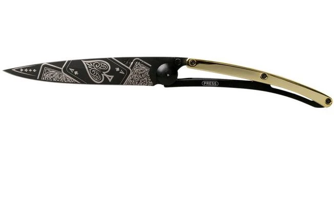 Deejo Tattoo Gold Black 37g, Yellow Gold Gilded, Good Luck 1GM000021 Pocket Knife