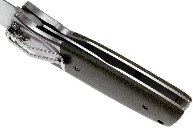 The PXL is a modern folding knife for daily use. The stainless steel blade is made from 3G laminated powder steel with a hardness of HRC 62, which leaves you with an edge that retains its sharpness for a very long time. The handle is made from stainless steel and indestructible micarta (fibre-reinforced plastic). It is safe to open and close the knife with one hand thanks to the strong liner bladelock. The PXL comes with a removable clip.