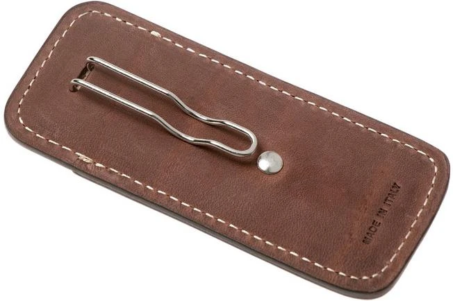 The LionSteel 900FDV3 sheath with pocket clip is a stunning leather sheath for your LionSteel pocket knife. This sheath is made from the LionSteel Opera, Jack, Gitano, BestMan, Barlow, Bolus TRE and Thrill. So, small LionSteel pocket knives. The sheath is also enhanced with a pocket clip. With it you can carry the sheath with the clip on the inside of your pocket. To make sure the knife won’t come into contact with other gear in your pocket and leave behind scratches. It also means you have quick access to your pocket knife, without having to look for it. And, of course, it looks very fancy when you combine a pocket knife with this sheath.
