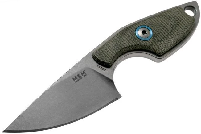 MKM Mikro 1 Drop, Stonewashed Green Canvas Micarta Neck Knife, Jesper Voxnaes Design